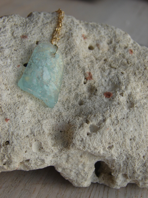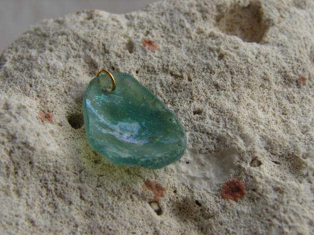 紀元前後のローマ帝国で作られたガラスの破片が地中に埋まって、長い年月が経つと、ガラスの成分と地中の微生物の化学反応によって ガラスの表面が虹色になります。