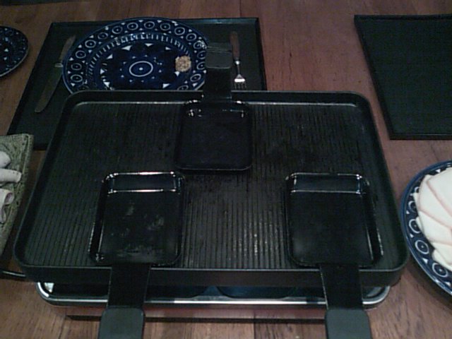 この小さな卵焼き器のようなトレーにラクレットチーズをのせ、(1人ひとつ)