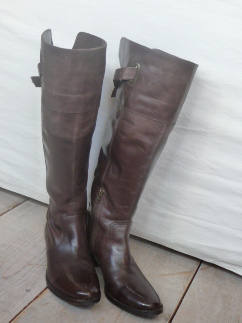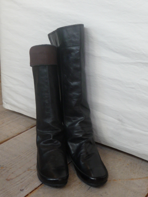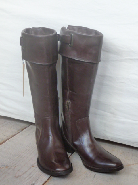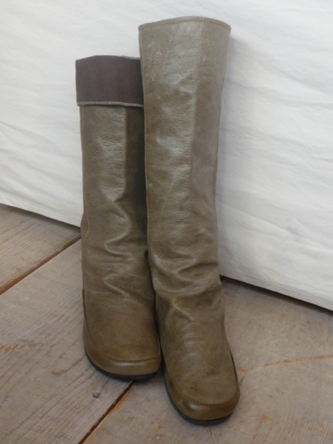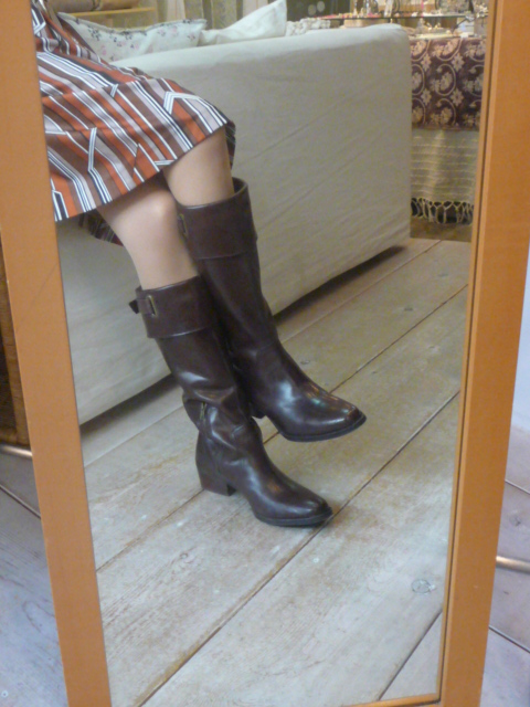 オレンジブラウン・白・ブラック・ブラウンのミックススカートに合わせたのは、今期から販売させていただいているTIC WORLDのブーツ!