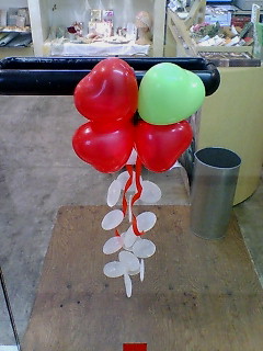 ハートの風船よっつ組み合わせてクローバーを制作。