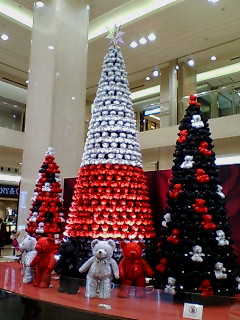 白と赤のツリー。(写真だとなんか紅白って感じですけどもっとラメラメしてて、きれいです)