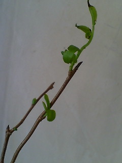 ご近所さんに頂いた、なんでしょう枝ものなんですけど、太陽のあたる場所に置いといたらどんどん新芽がでてきました。