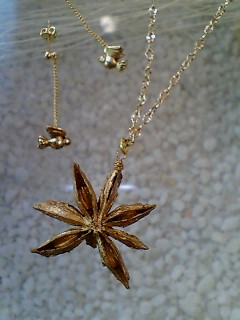 写真右のネックレス、スターアニスをゴールド色でコーティングしてネックレスにしてみました。