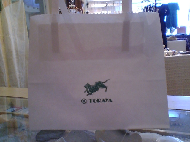 時間がなくて、もらって帰ったとらやのお菓子が入った袋。和菓子屋さんの紙袋、ほんとかわいい。