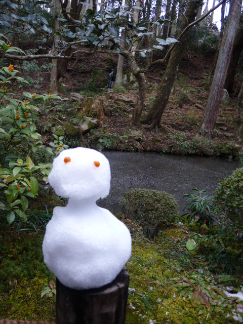 少ない雪を集めて誰かが飾ったゆきだるま☆