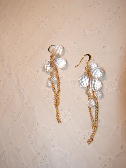 ゴールドに透明のカットガラスで作ってもらったピアスには下品でない華やかさが。