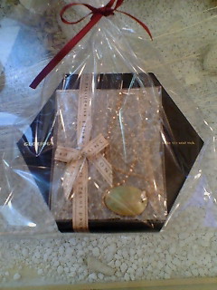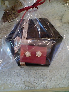 下の六角形の箱がお菓子、でその上にはPAOのSILVERで作られた蓮のピアス。